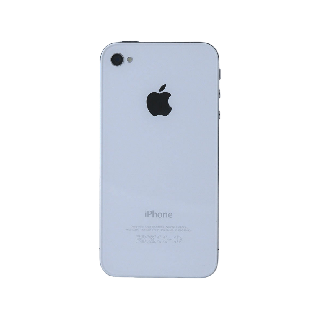 درب پشت Apple iPhone 4S از شیشه معدنی سخت شده با ضخامت 0.6 میلی متر و فریم استنلس استیل surgical grade ساخته شده است . این طراحی که بهبود یافته مدل Apple iPhone 4 می باشد , از نظر ابعادی کاملا مشابه اما با تغییرات جزئی در آنتن ها تولید شده است . ابعاد دقیق این قطعه 115.2 × 58.6 × 9.3 میلی متر می باشد .